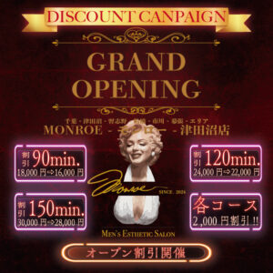 津田沼のメンズエステMONROE モンロー|市川・幕張・習志野・千葉・船橋エリアからアクセス抜群&お得なキャンペーン実施中! こんにちは!津田沼にあるメンズエステ「MONROE モンロー」です。当サロンは、モンロー屈指の […]